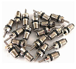 Набор золотников. Набор ниппелей для сервисных портов автомобильных кондиционеров на фреоне R134a. В комплект входит сервисный ключ, набор самых распространенных ниппелей. Поставляется в пластиковом футляре.