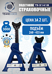 Регулируемая высота подъёма. Быстрота фиксации на нужной высоте. Надёжный зубчатый механизм фиксации. Четыре опоры на металлических пластинах. Подставка под автомобиль ремонтная, грузоподъемность 3т, подъем 290-440 мм (Комплект-2шт)