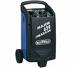Пусковой ток 300А. Работа с АКБ напряжением 12-24 В емкостью до 700 А/ч и токе зарядки 30-45 А. Защита от короткого замыкания, перегрузки и изменения полярности. Оснащены переключателем для выбора режима нормальной и ускоренной зарядки (BOOST). Индикация зарядного и пускового тока. Major 320 Start - пускозарядное устройство для всех типов автомобилей, фургонов и легких грузовиков.