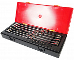 Набор ключей разрезных в прочном презентабельном боксе (10 предметов). В комплекте: ключи разрезные (Евро-тип) – 8х9, 10х12, 11х13, 14х17, 16х18, 17х19, 3/8”х7/16, 1/2”х9/16 – 8 шт. Ключи разрезные с покрытием – 10х11, 10х12 мм. – 2 шт.