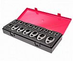 Набор ключей трещоточных с подвижной головкой в прочном презентабельном боксе (14 предметов). В комплекте:ключ рожково-накидной (шарнирный с трещоткой) 8 мм, 10 мм, 11 мм, 12 мм, 13 мм, 14 мм, 15 мм, 16 мм, 17 мм, 18 мм, 19 мм - 11 шт. и адаптеры 1/4", 3/8", 1/2" - 3 шт.