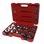 Набор съемников масляных фильтров ("чашки") - 14 шт. Съемники изготовлены в форме чашек из прочного металла и способны выдерживать большие нагрузки. Каждая чашка снабжена усиленной площадкой с посадочным квадратом. Конструкция съемников в форме крышек исключает повреждение масляного фильтра при его снятии и установке. Возможность использовать привод с посадочным квадратом 1/2"; 3/8"; гаечный ключ или торцевую головку на 21 мм.