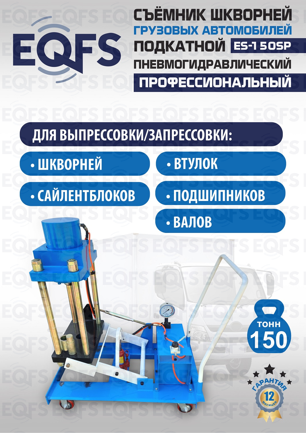 Сокращает время ремонта. Позволяет работать под разными углами 1 человеку. Мобильный. Для выпрессовки шкворней из поворотной цапфы погрузчиков, тракторов, строительной техники, коммерческих и грузовых авто отечественного и импортного производства: MAN, MERCEDES, SCANIA, VOLVO, Корейские и Китайские автомобили. Можно использовать при выездных работах. Пневмогидравлический привод - требуется подключение сжатого воздуха. Рабочее окно 400x320 мм. Усилие 150 тонн.