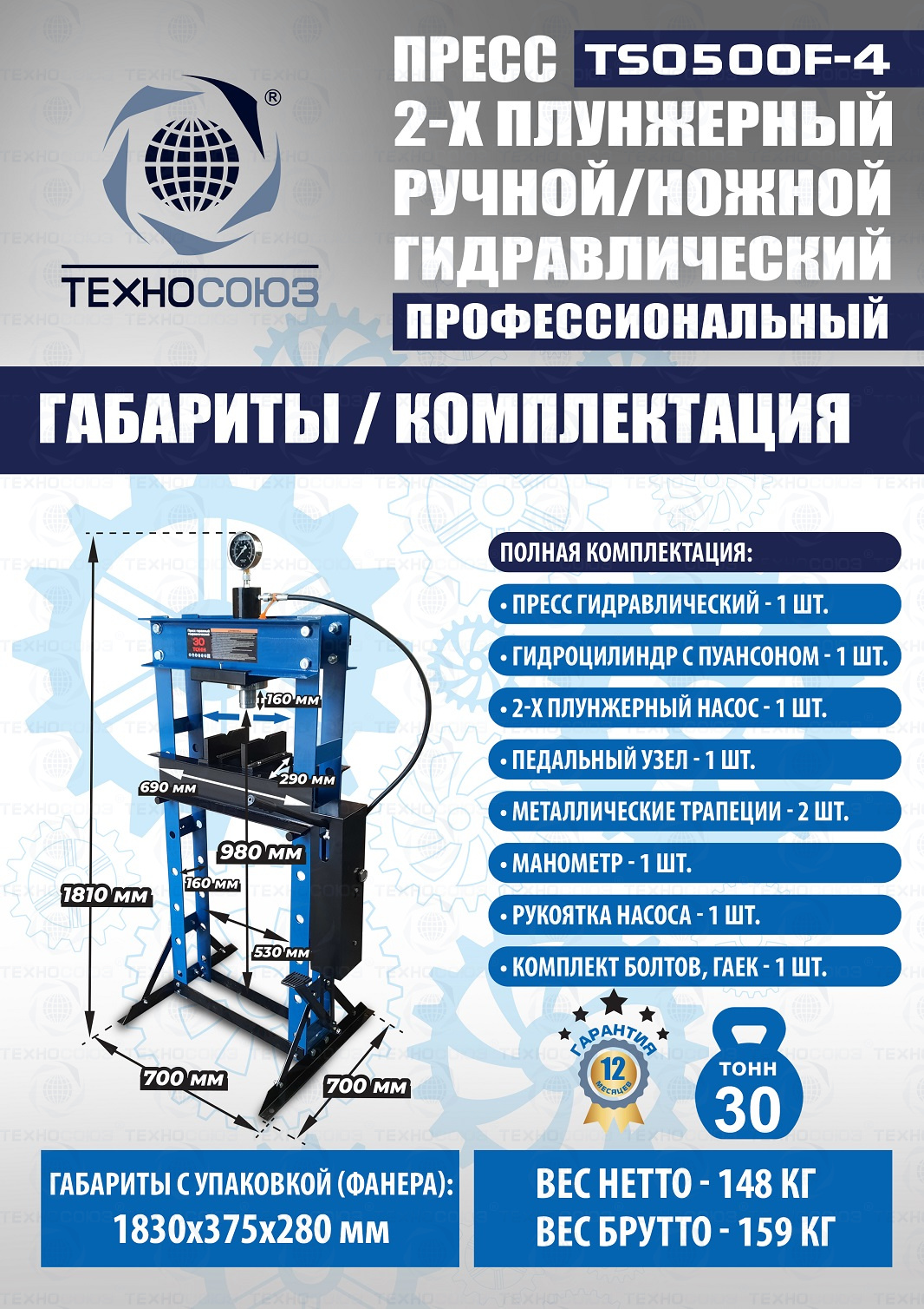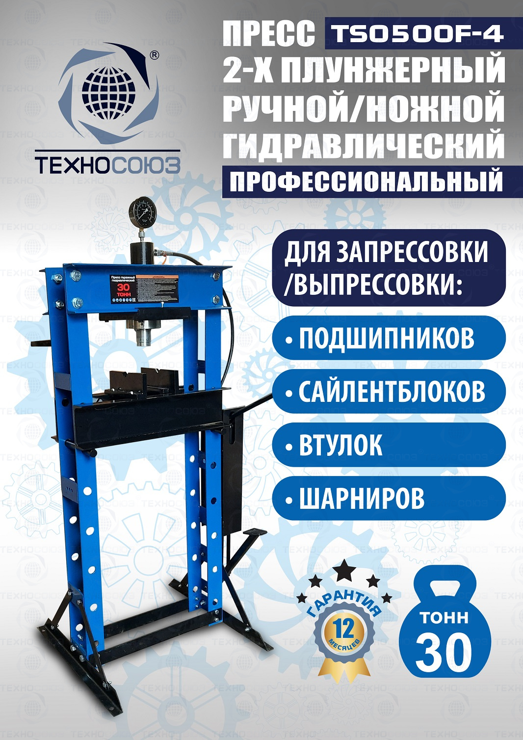 TS0500F-4 Пресс гидравлический ручной/ножной, 30 тонн