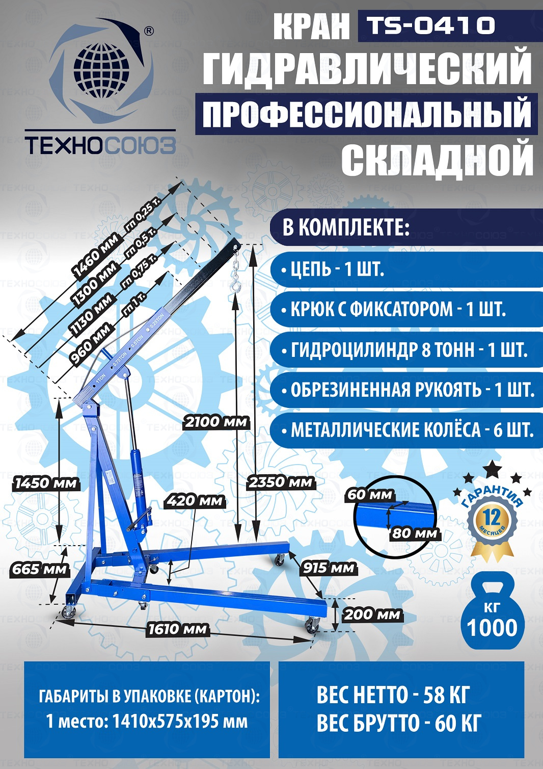 TS-0410 Кран гаражный, 1 т